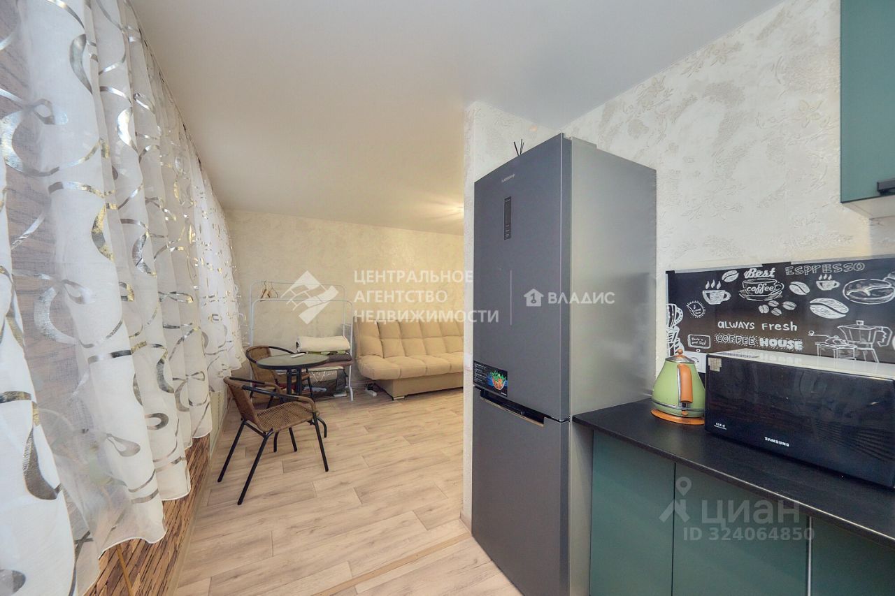 Просторная квартира: общая площадь — 30,8 кв. м, жилая — 18 кв. м, площадь кухни — 8 кв. м.