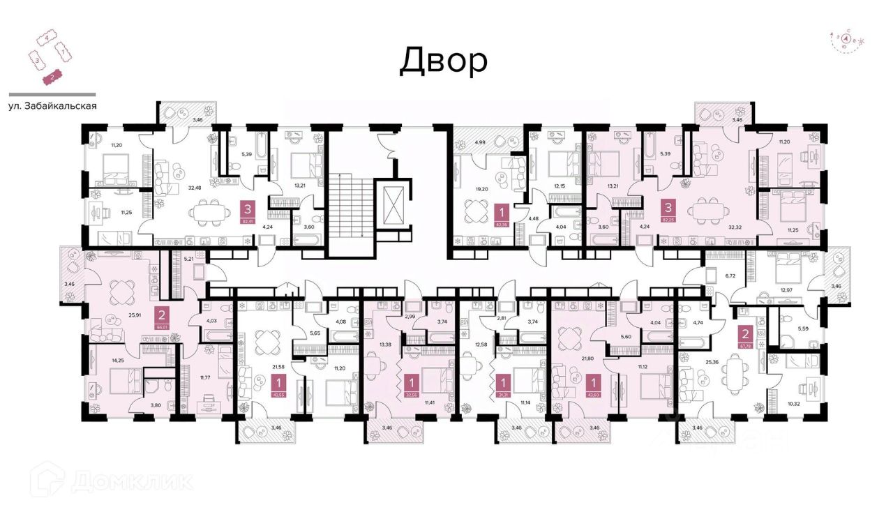1 комн. квартира в ЖК Квартал Дягилев, площадь 43.55 м², жилая м², кухня м²