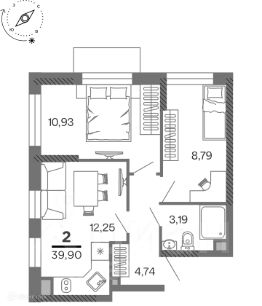 2 комн. квартира в ЖК город Рязань, Улица Зубковой, площадь 39.9 м², жилая 19.72 м², кухня 12.25 м²