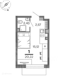 1 комн. квартира в ЖК город Рязань, Улица Зубковой, площадь 20.22 м², жилая 11.61 м², кухня 3.51 м²
