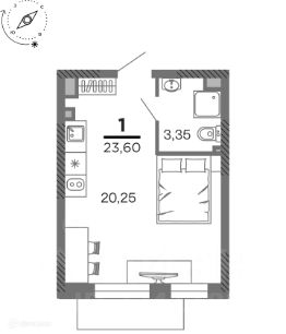1 комн. квартира в ЖК город Рязань, Улица Зубковой, площадь 23.6 м², жилая 13.72 м², кухня 3.96 м²