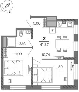 2 комн. квартира в ЖК город Рязань, Улица Зубковой, площадь 41.87 м², жилая 22.48 м², кухня 10.74 м²
