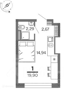 1 комн. квартира в ЖК город Рязань, Улица Зубковой, площадь 19.9 м², жилая 11.61 м², кухня 3.33 м²