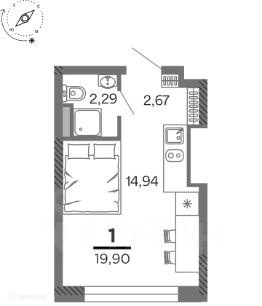 1 комн. квартира в ЖК город Рязань, Улица Зубковой, площадь 19.9 м², жилая 11.61 м², кухня 3.33 м²