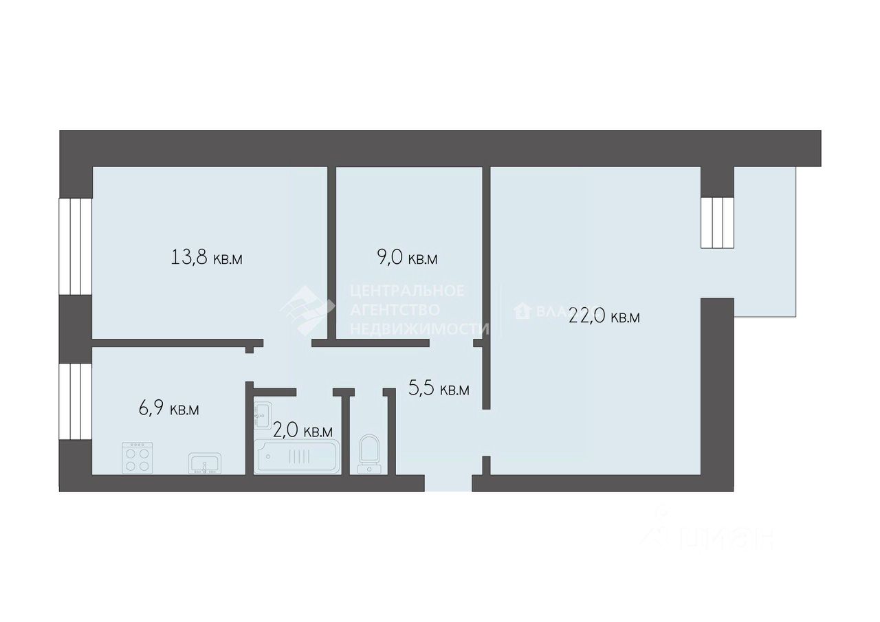 Площадь комнат: 13,8 + 22 + ( 9 кв. м. гардеробная)