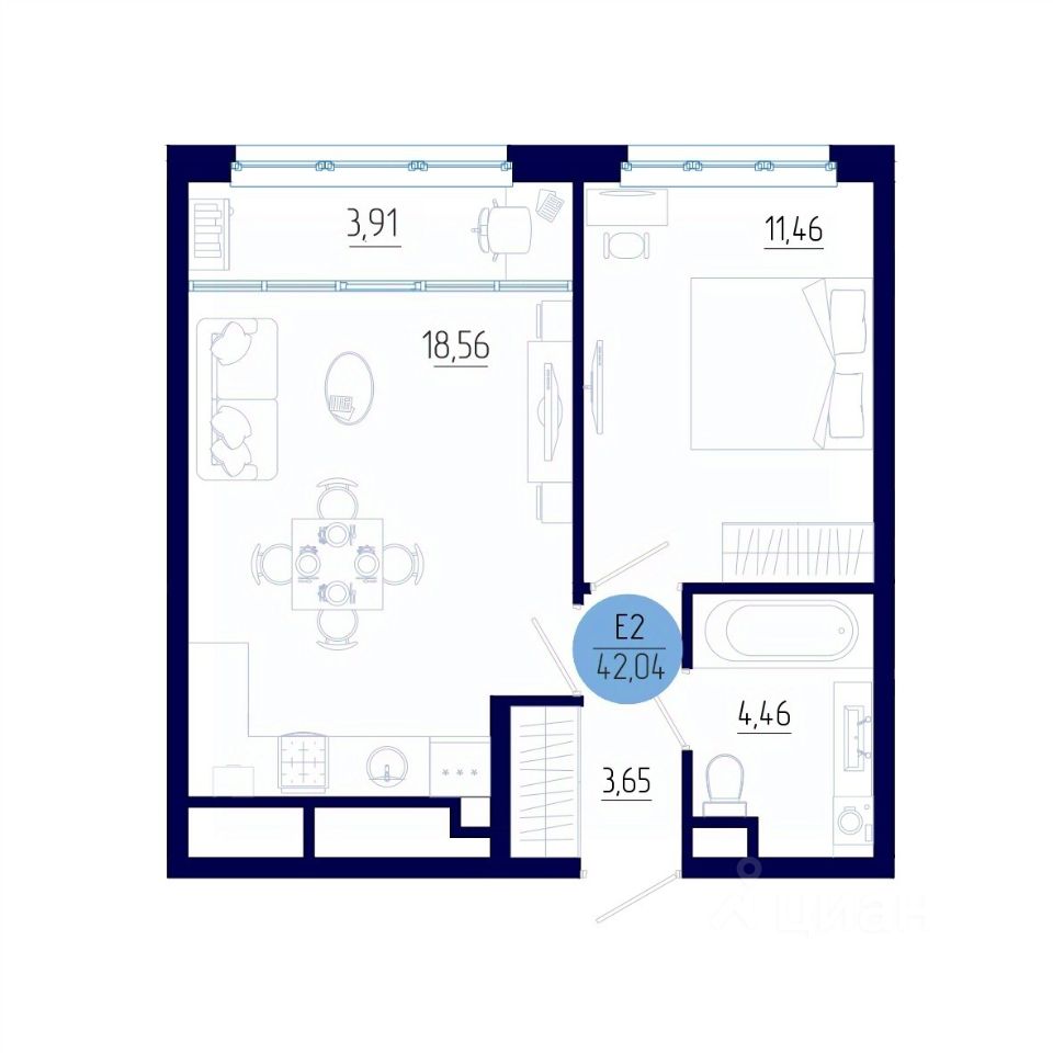 Общая площадь42,04 м²