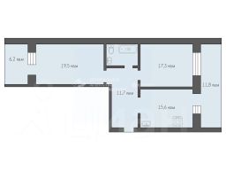 - две изолированные комнаты (17,3+19,5 кв.м), кухня - 15,6 кв.м, санузел - 5 кв.м - совмещен