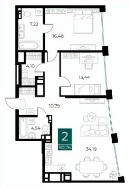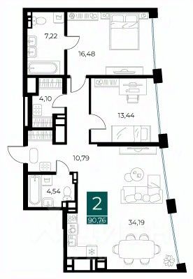 Общая площадь90,76 м²