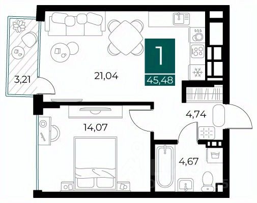 Общая площадь45,48 м²