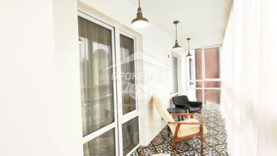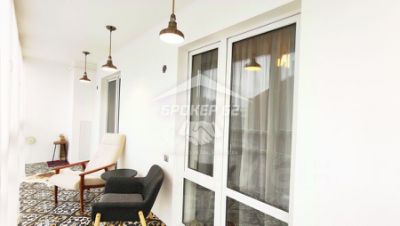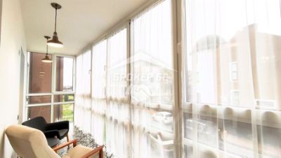 просторная лоджия с панорамным остеклением выведенным светом, где приятно проводить время на свежем воздухе