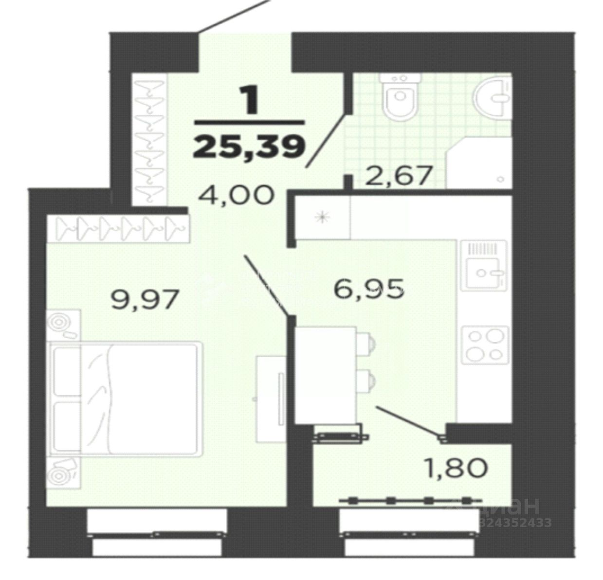 ЖК " Юный 9", студия 25.39 кв.м + кладовая 2.09 кв.м.Кладовая входить в стоимость.