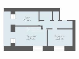 - Общая площадь: 44,4 кв. м.