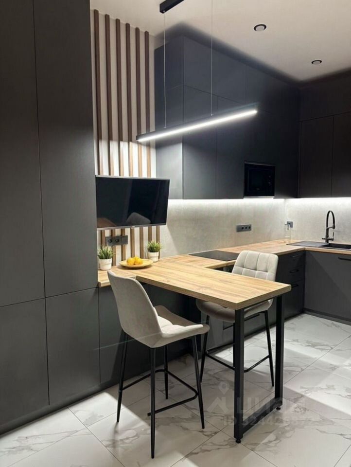Квартира представляет собой стильную евродвушку с большой кухней-гостиной и отдельной спальней, что идеально подходит для комфортного проживания одного человека или пары. Кухня полностью меблирована и оснащена всем необходимым: встроенный холодильник, посудомоечная машина, микроволновая печь, духовой шкаф, индукционная плита, телевизоры и кондиционер. В прихожей установлен вместительный шкаф для хранения вещей. В санузле и на лоджии выполнен теплый пол. Высокие потолки, панорамные окна и отличная звукоизоляция создают уютную атмосферу.