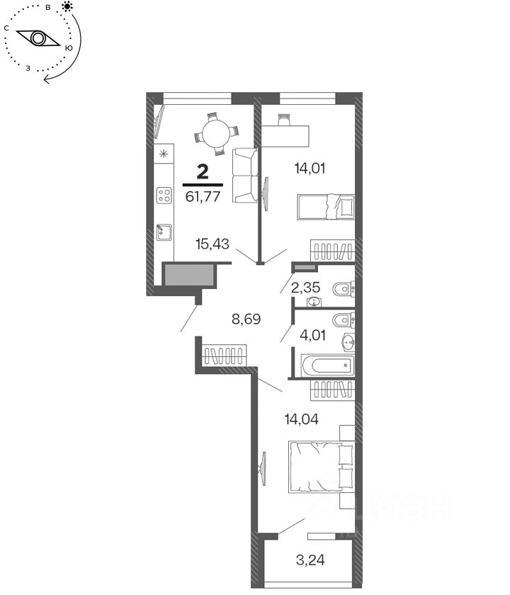 Продаётся 2-комнатная квартира в строящемся доме (Дом 4), срок сдачи: IV-кв. 2029, общей площадью 61.77 кв.м., на 2 этаже. Новый современный жилой комплекс комфорт-класса с прилегающей парковой территорией и уникальной архитектурой. Жилой комплекс гармонирует с зеленой зоной - район застройки расположен в непосредственной близости от березовой рощи и парка им. Гагарина, площадью в 130 тысяч м2. Локация дома располагает к занятиям спортом на свежем воздухе и приятным вечерним прогулкам в тени деревьев.
