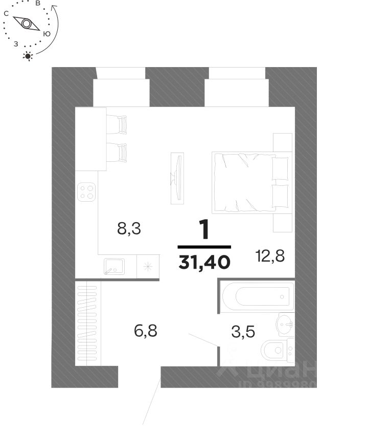Общая площадь31,4 м²