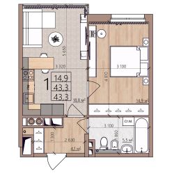Общая площадь43,3 м²