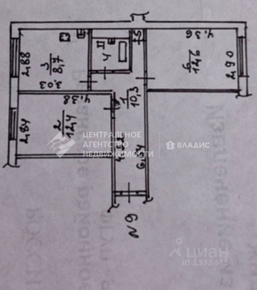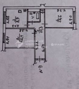 Общая площадь 47,3 кв.м , комнаты 14,6+12,4 кв.м., санузел совмещен, установлены окна ПВХ