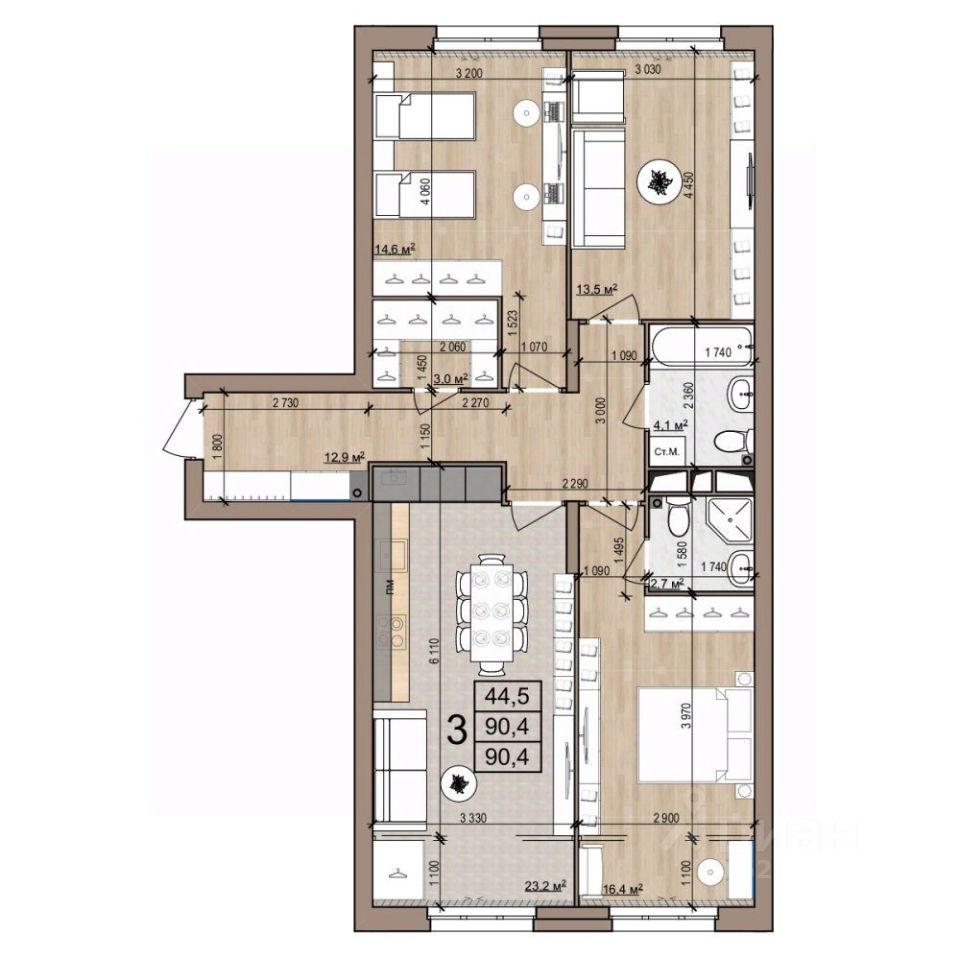 Продаётся 3-комнатная квартира в строящемся доме (Корпус 1), срок сдачи: I-кв. 2029, общей площадью 90.4 кв.м., на 6 этаже. Новый жилой комплекс "Полярная звезда" от застройщика "Зеленый сад" расположен по адресу Рязань, улица Новосёлов, 33Б.