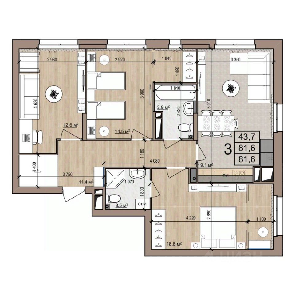 3-комн. от 81,6 м²