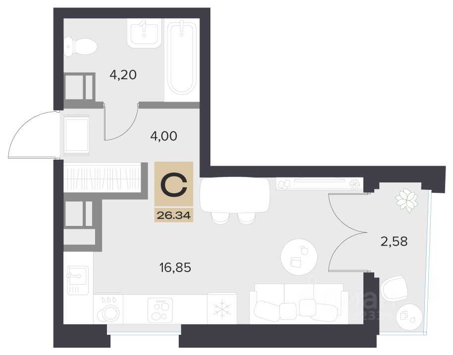 Продаётся студия в строящемся доме (Корпус 1), срок сдачи: IV-кв. 2028, общей площадью 26.34 кв.м., на 7 этаже. В мире, где все стремится вверх, мы переосмыслили понятие истинного комфорта.