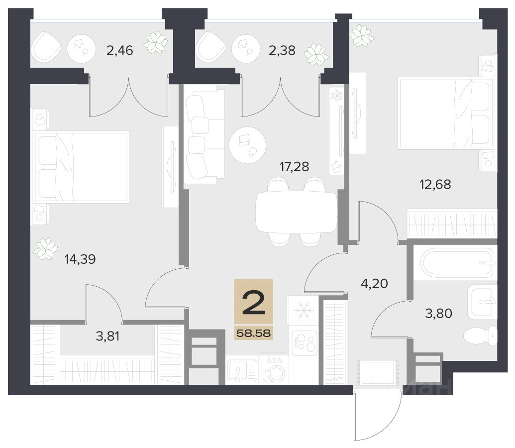 Продаётся 2-комнатная квартира в строящемся доме (Корпус 1), срок сдачи: IV-кв. 2028, общей площадью 58.58 кв.м., на 2 этаже. В мире, где все стремится вверх, мы переосмыслили понятие истинного комфорта.