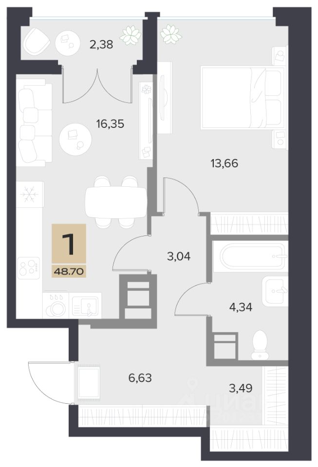Продаётся 1-комнатная квартира в строящемся доме (Корпус 1), срок сдачи: IV-кв. 2028, общей площадью 48.7 кв.м., на 2 этаже. В мире, где все стремится вверх, мы переосмыслили понятие истинного комфорта.