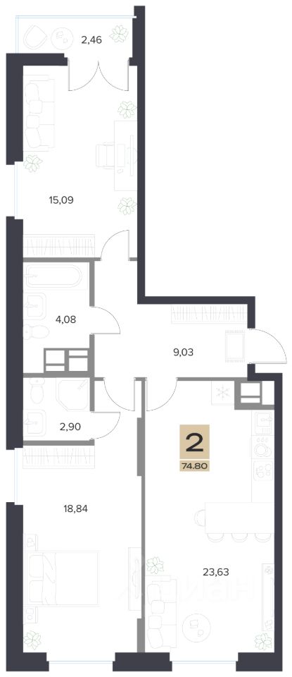 Продаётся 2-комнатная квартира в строящемся доме (Корпус 1), срок сдачи: IV-кв. 2028, общей площадью 74.8 кв.м., на 7 этаже. В мире, где все стремится вверх, мы переосмыслили понятие истинного комфорта.