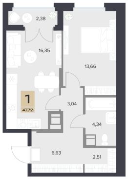Продаётся 1-комнатная квартира в строящемся доме (Корпус 1), срок сдачи: IV-кв. 2028, общей площадью 47.72 кв.м., на 9 этаже. В мире, где все стремится вверх, мы переосмыслили понятие истинного комфорта.