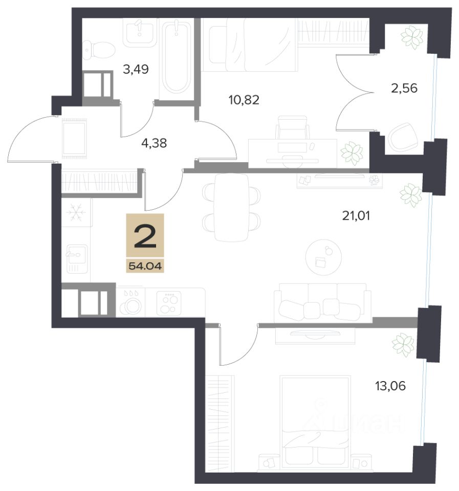 Продаётся 2-комнатная квартира в строящемся доме (Корпус 1), срок сдачи: IV-кв. 2028, общей площадью 54.04 кв.м., на 4 этаже. В мире, где все стремится вверх, мы переосмыслили понятие истинного комфорта.