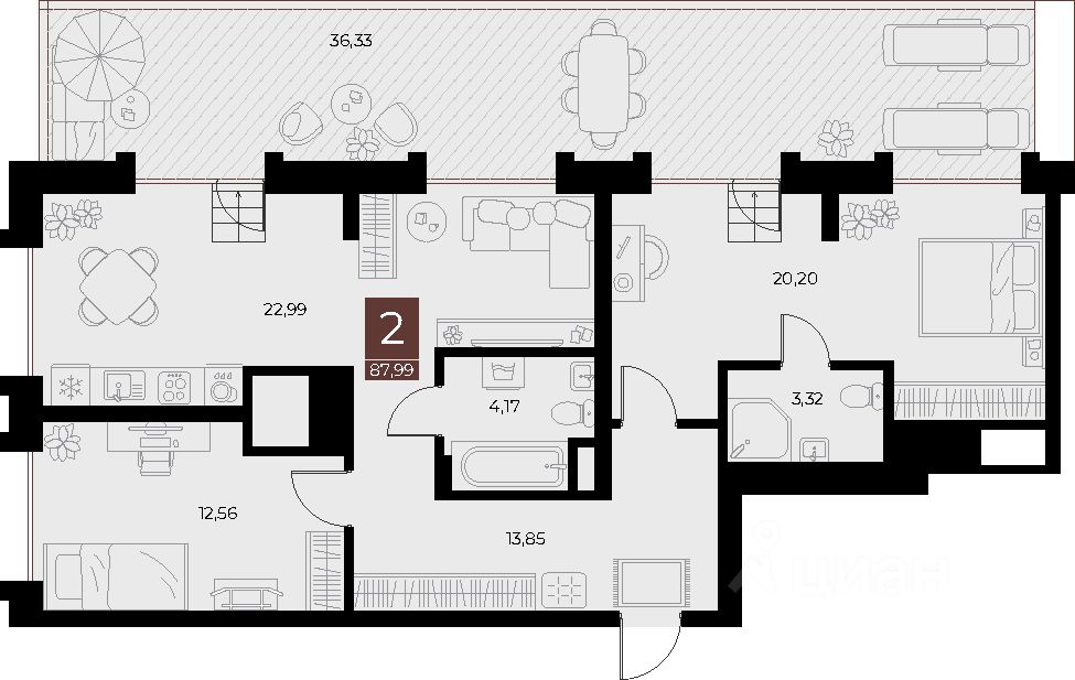 На территории предусмотрен двор-сад и сквер с ландшафтным дизайном, сквер с озеленением, а также открытое пространство для резидентов на втором этаже. Закрытый двор без машин — безопасное место для детей и взрослых