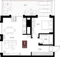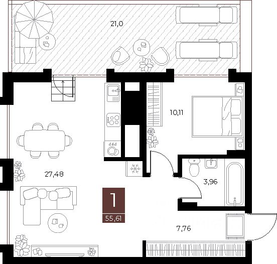 Продается 1-комн. квартира, 55,61 м²