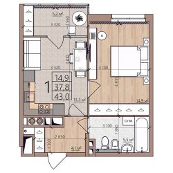 Жилая площадь14,9 м²