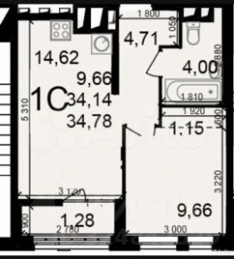 14,6 м²