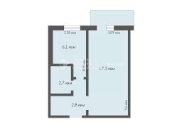 Общая площадь: 30,3 кв. м. Жилая площадь: 17,3 кв. м. Площадь кухни: 6,1 кв. м. Высота потолков: 2,53 м.