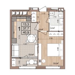 Общая площадь40,9 м²