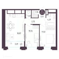 2 комн. квартира в ЖК Крылья, площадь 57.91 м², жилая 22.06 м², кухня 18.87 м²