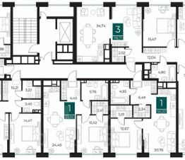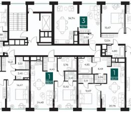 1 комн. квартира в ЖК Арт-кварталы, площадь 51 м², жилая 13.92 м², кухня 24.48 м²