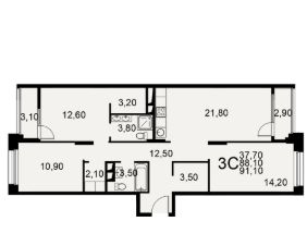 91,1 м²