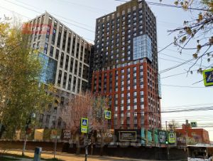 Дом бизнес -класса, двор без машин, сквозной проход в подъезды, многоуровневый наземный паркинг, просторные холлы, на первом этаже наличие больших колясочных и велосипедных комнат, места для мойки лап животным. Два скоростных лифта. Вентилируемый навесной фасад из керамогранитной плитки под кирпичную кладку создает прекрасный архитектурный вид.