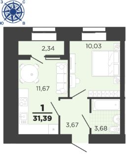 Общая площадь31,39 м²