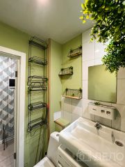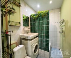 Санузел совмещенный, выполнен в современном стиле в плитке. Установлены все необходимые сантехнические приборы, стиральная машинка.