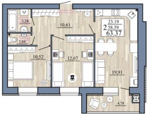 2-х комнатная квартира в жилом комплексе СТРИЖИ СРОК СДАЧИ ДОМА - 2 квартал 2026 года. Уютная двухкомнатная квартира европланировки общей площадью 63,37 кв.м. Это идеальное решение для комфортной жизни! Квартира включает в себя: Вместительную кухню-гостиную, которая станет центром домашнего уюта, прекрасно подойдет как для семейных ужинов, так и для встреч с друзьями. Две комфортабельные спальни, обеспечивающие уединение и комфорт для всех членов семьи. Также в квартире предусмотрены: Раздельный санузел, что добавляет дополнительное удобство в повседневной жизни. Просторный коридор, где предусмотрено место для шкафов и хранения необходимых вещей. Эта квартира идеально подходит для тех, кто ценит пространство и комфорт. В наших квартирах вам не захочется что-то менять или переделывать. Мы позаботились о том, чтобы все было на высшем уровне, а ремонт не отнял много времени и средств. Вот основные преимущества: Отделка "White Box Premium": ЖК Стрижи представляет собой первый в Рязанской области жилой комплекс, где во всём комплексе реализована премиальная предчистовая отделка White Box Premium. Все квартиры передаются с идеально подготовленными поверхностями, готовыми к финишной отделке: стены выровнены, оштукатурены белоснежным цветом и идеально подходят для поклейки обоев любой плотности (кроме самых тонких). В санузлах и на лоджиях применена суперстойкая цементная штукатурка! Также в комплект входит надежная металлическая дверь. Окна премиум-класса: Современные окна обеспечивают отличную тепло- и звукоизоляцию, создавая комфортные условия внутри квартиры и защищая от внешних шумов. Индивидуальное отопление: Каждая квартира нашего дома оборудована индивидуальным газовым котлом. Вы можете создать комфортную температуру в любое время года, независимо от погодных условий. Приточная вентиляция в каждой комнате: Обеспечивает свежий воздух и поддерживает оптимальный микроклимат, что особенно важно для вашего здоровья и благополучия. Теплые полы: Во входной зоне коридора, ванных комнатах и санузлах установлены тёплые полы. Система очистки воды: Гарантирует вам доступ к чистой и безопасной воде, что сделает повседневную жизнь более комфортной и здоровой. Выбирая наши квартиры, вы получаете пространство, в котором все продумано до мелочей для вашего комфорта и удобства! ЖК СТРИЖИ - это современный десятиэтажный кирпичный дом, который станет настоящим украшением вашего района. Архитектурное оформление в японском стиле создает уникальную атмосферу гармонии и уюта, идеально сочетающуюся с окружающей природой. Жилой комплекс СТРИЖИ расположен в экологически чистом и динамично развивающемся районе города Рыбное. Здесь предусмотрено всё необходимое для комфортной жизни: Ландшафтный дизайн: Эстетически продуманные территории с благоустроенными дорожками и украшающими насаждениями. Зеленые зоны для отдыха и прогулок, где каждый сможет насладиться свежим воздухом. Игровые и спортивные зоны: Оригинальные площадки для дете