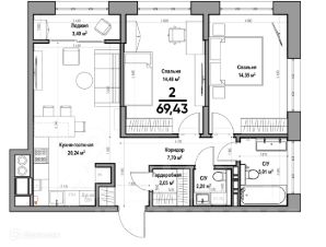 69,43 м²