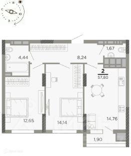 57,8 м²