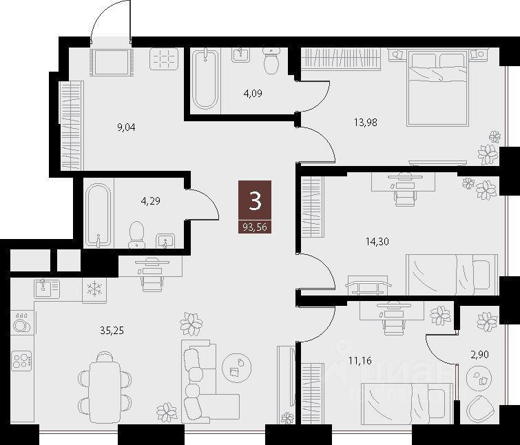 Общая площадь93,56 м²