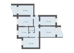 Планировка включает 4 изолированные комнаты (15,5 + 15,9 + 15,6 + 15,9 кв. м), из которых три спальни и одна гостинная, что позволит каждому члену семьи иметь своё личное пространство.