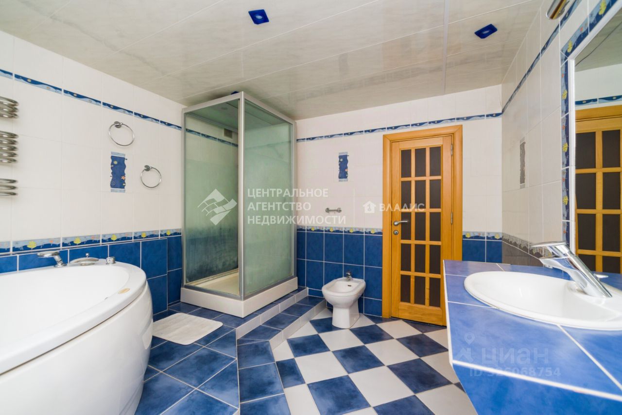 В ней свободно разместились большая угловая ванна, душевая кабина, стиральная машина.