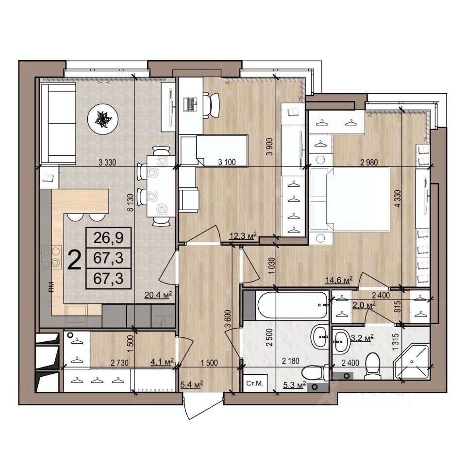67,3 м²