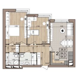 64,9 м²