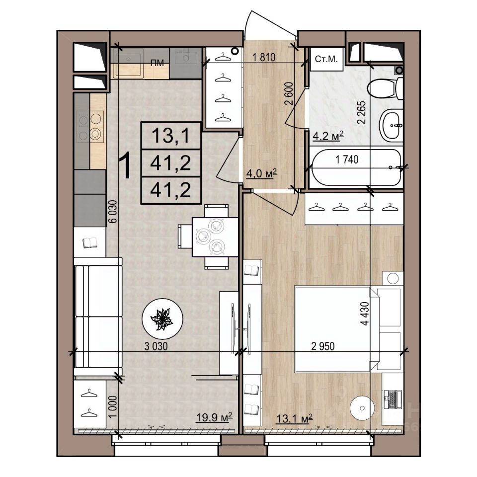 Квартира 132, 1-комнатная в ЖК Полярная звезда от компании "Зеленый сад". Московский район, развитая инфраструктура. Купить квартиру в новостройке в Рязани: 41.2 кв.м., 18 этаж. Кухня — 19.9 кв.м. Ипотека, Trade-In. Подробности на нашем сайте